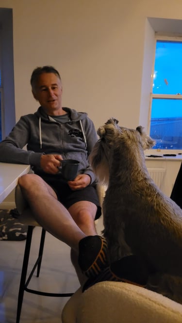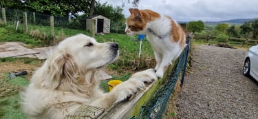 We’re a husband-and-wife team with different strengths: Ruth looks after the daily care, exercise, and well-being of our guests, while David keeps things running smoothly with bookings, meet and greet, and maintenance. Between us, we make sure both the dogs and the humans are looked after.